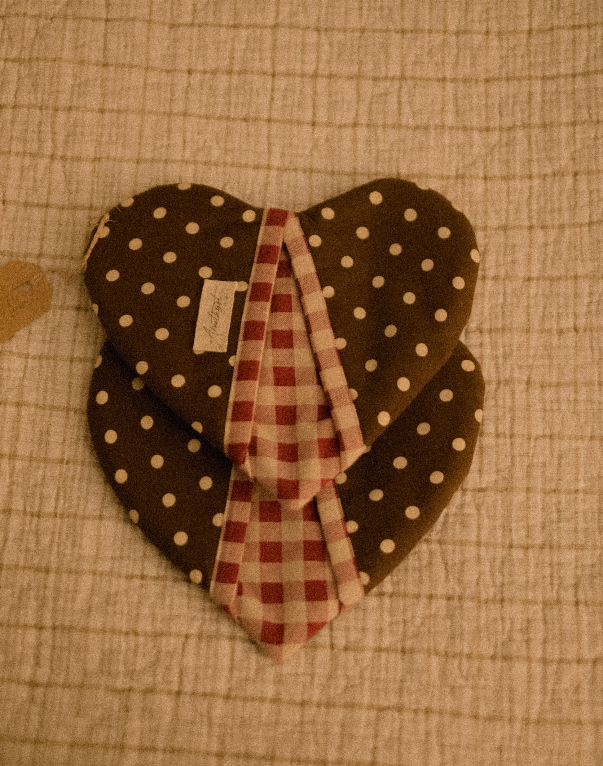 Let your heart be in the kitchen too with our handmade heart-shaped oven mitts! Handmade with vintage recycled fabrics. So sweet you'll actually want to start baking.
