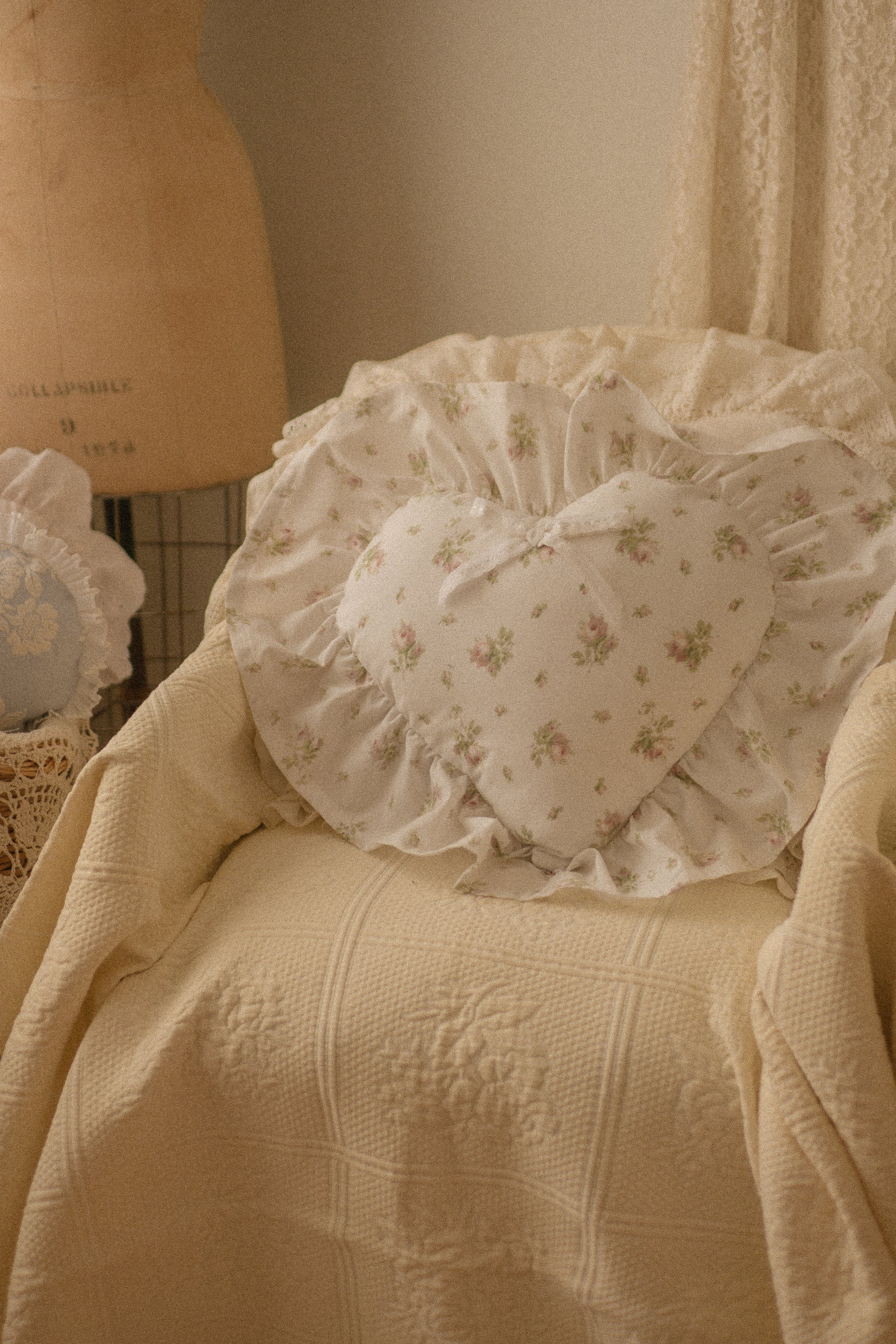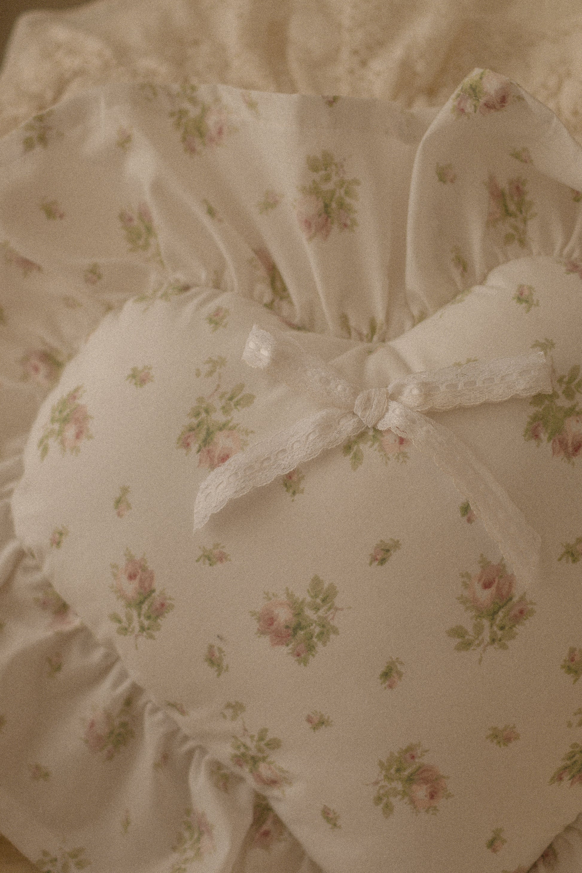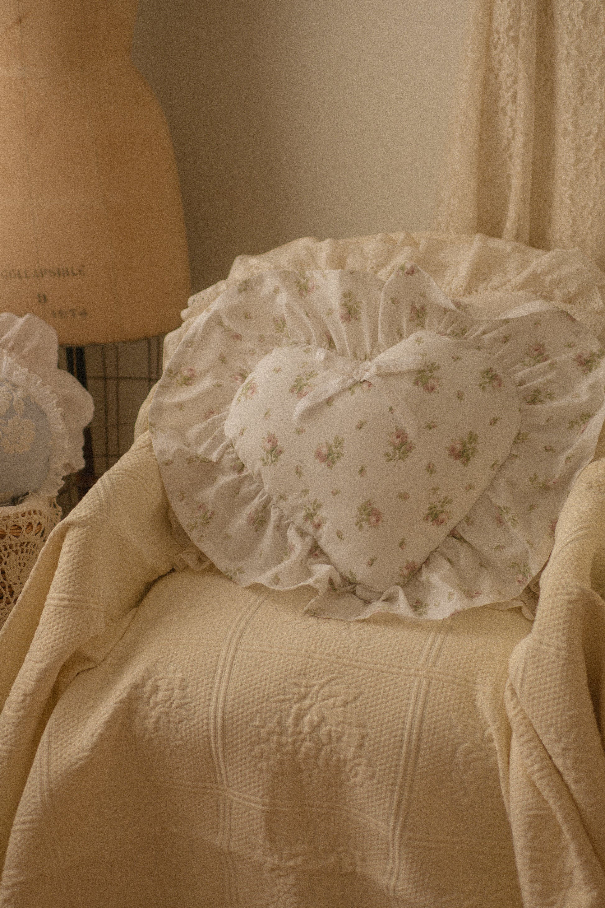 Delicate as a love letter and sweet as a summer's day, this heart-shaped pillow is a dreamy ode to romance & timeless beauty. Handmade with love , featuring soft ruffled edges and a dainty floral print. Perfect for adorning your bed, cozy chair, or favorite daydreaming spot, this gentle treasure brings a tender touch of cottagecore grace to any space, a heart full of softness, stitched with sentiment.