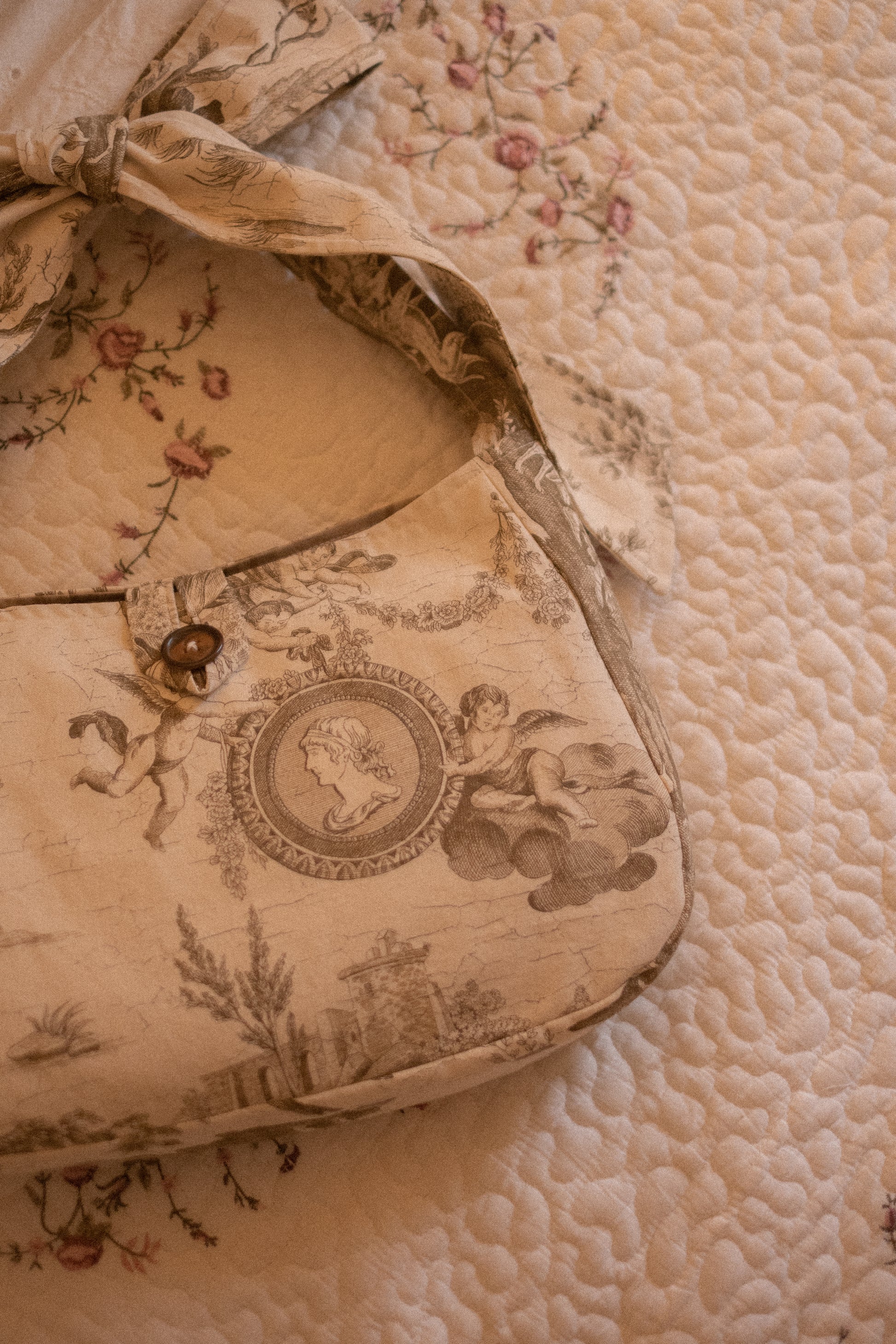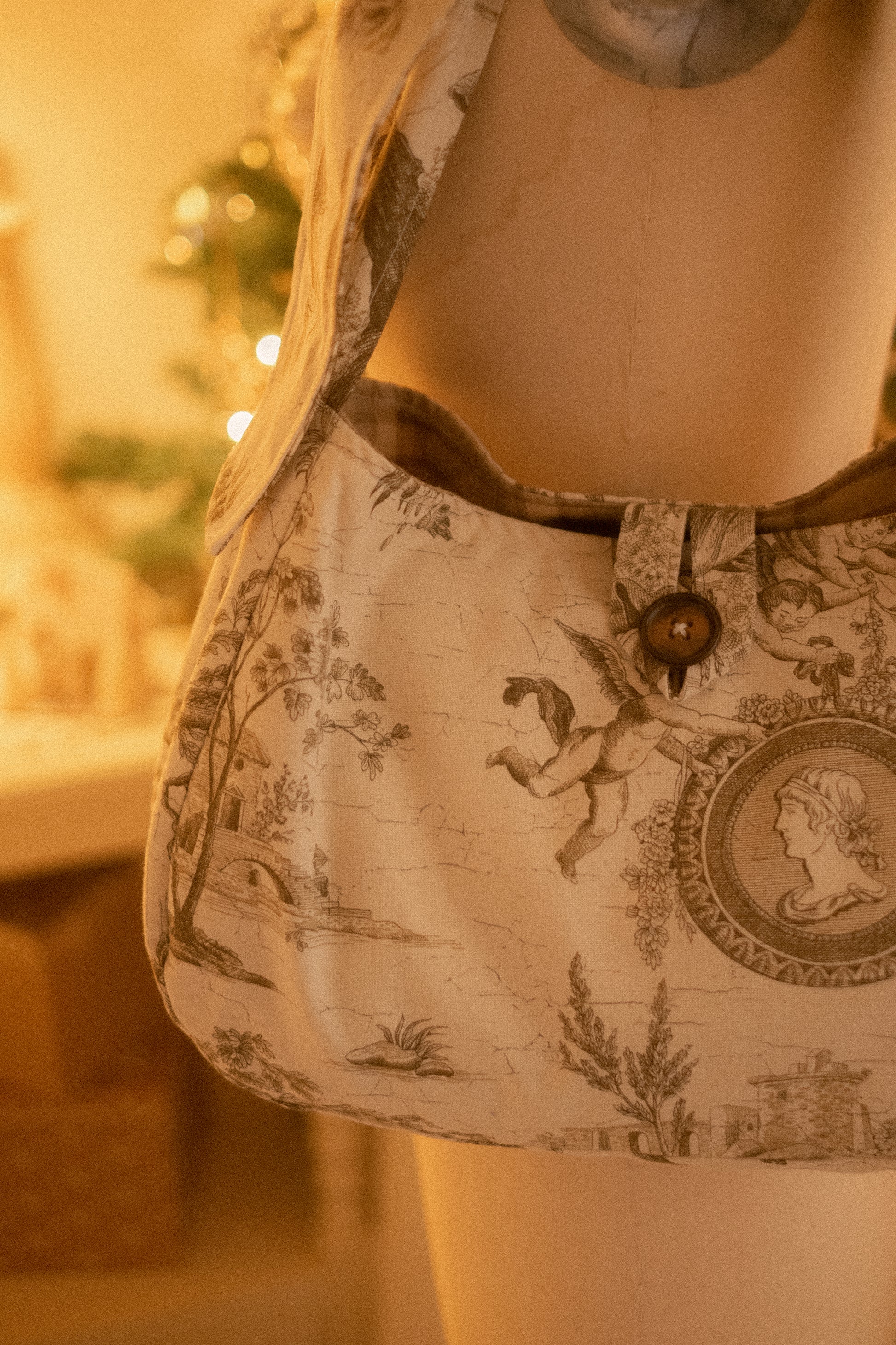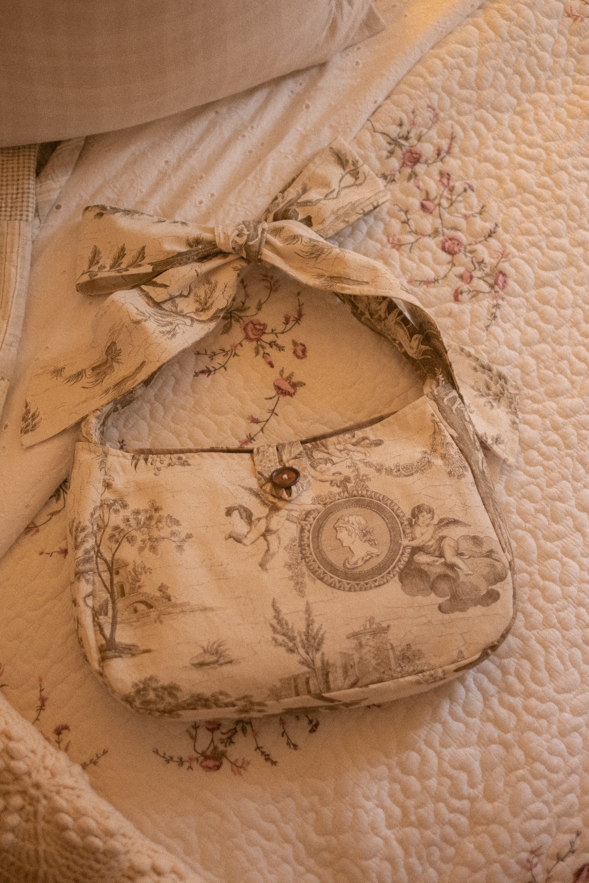 Inspired by old winter tales and cottages dusted with snow, this neutral toile tote brings a touch of nostalgia to your holiday season. The bow strap adds a gentle feminine detail, while the button closure keeps everything secure as you stroll through markets or carry gifts to loved ones. A simple, magical piece you'll reach for all winter long.🪡 ✨