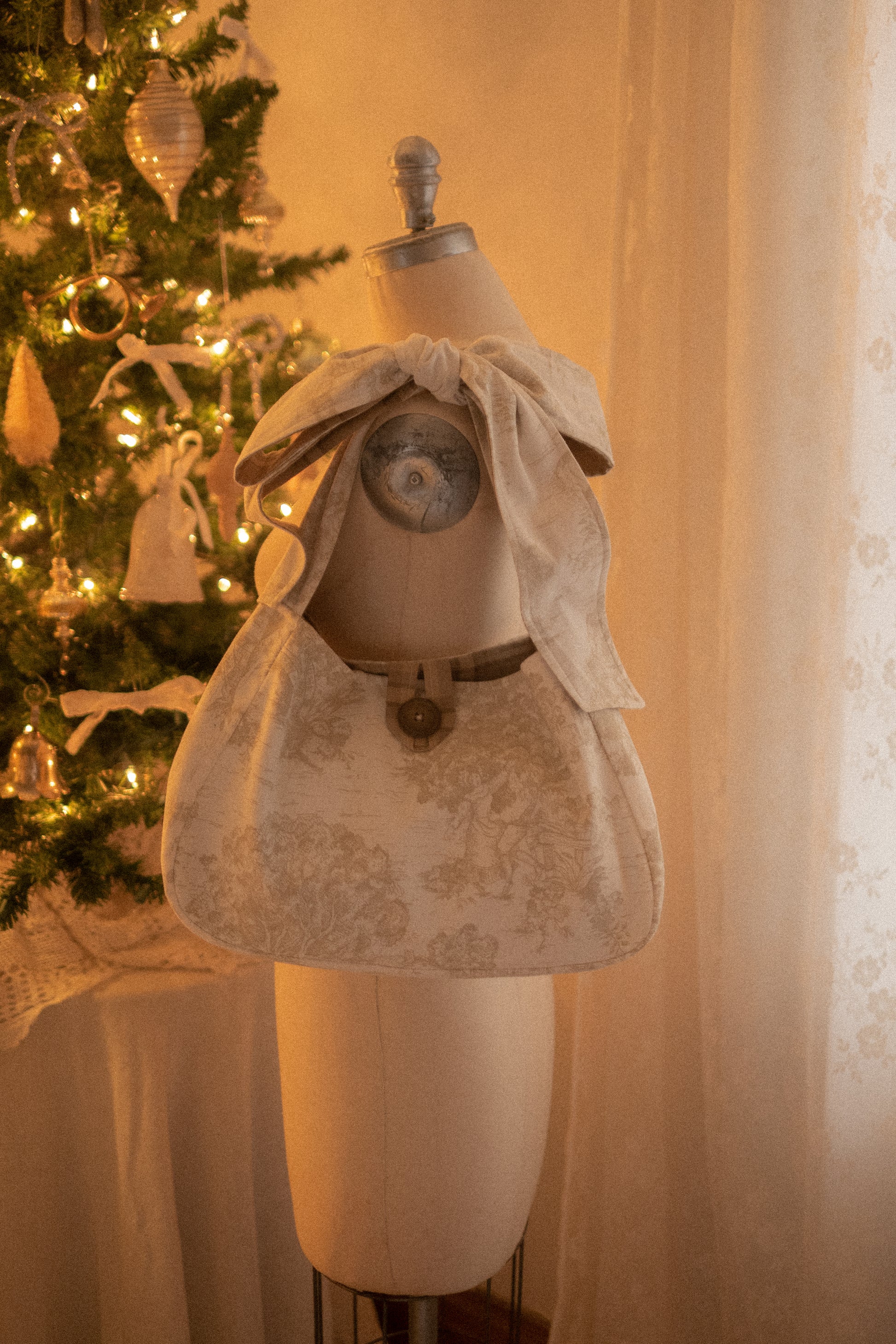 Inspired by old winter tales and cottages dusted with snow, this neutral toile tote brings a touch of nostalgia to your holiday season. The bow strap adds a gentle feminine detail, while the button closure keeps everything secure as you stroll through markets or carry gifts to loved ones. A simple, magical piece you'll reach for all winter long.🪡 ✨