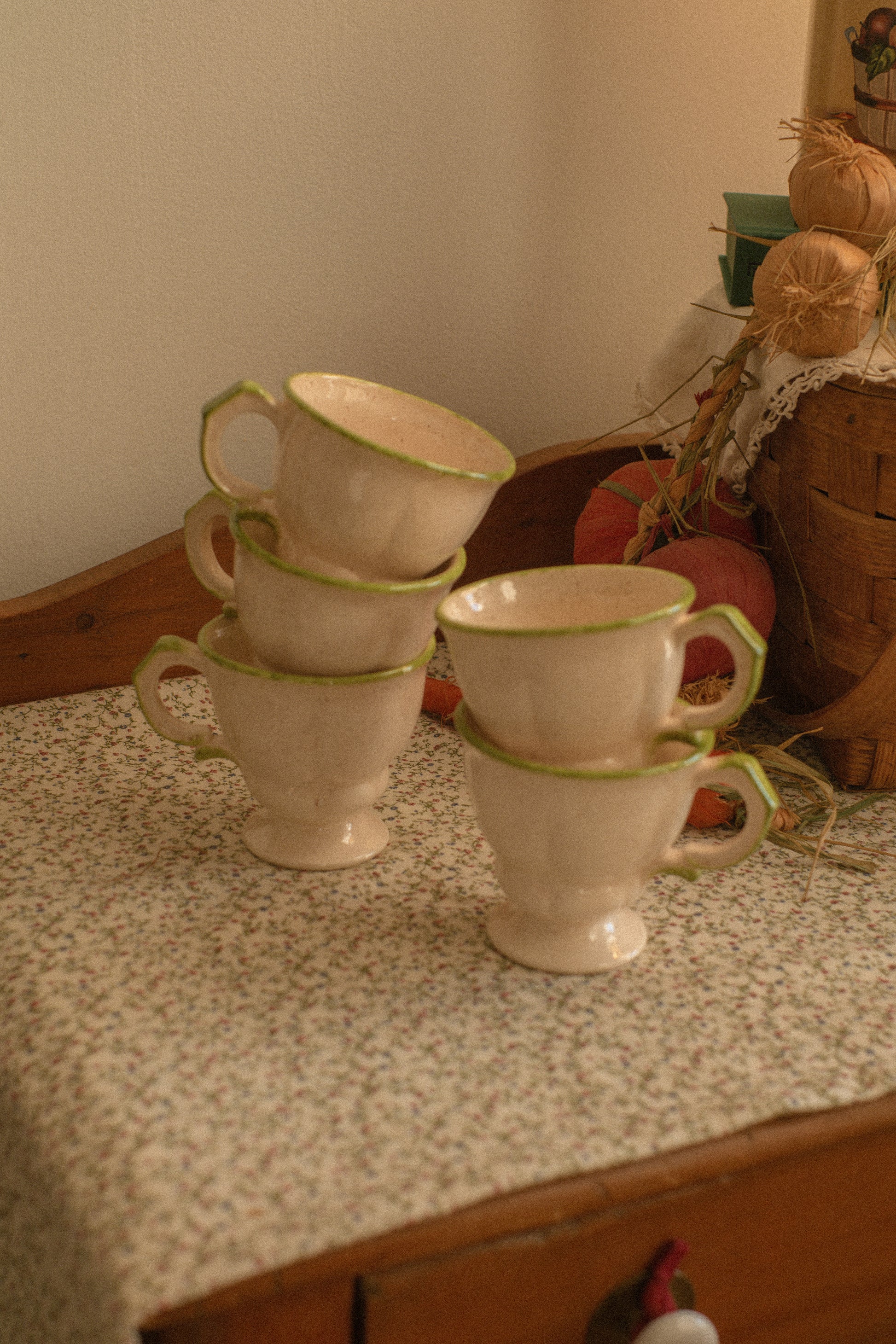 Sip in style with this vintage handmade pottery tea cup set, where timeless craftsmanship meets earthy charm. Each cup is uniquely hand-thrown and glazed, showcasing the subtle variations and gently curved silhouettes that only true artisan pottery can offer.